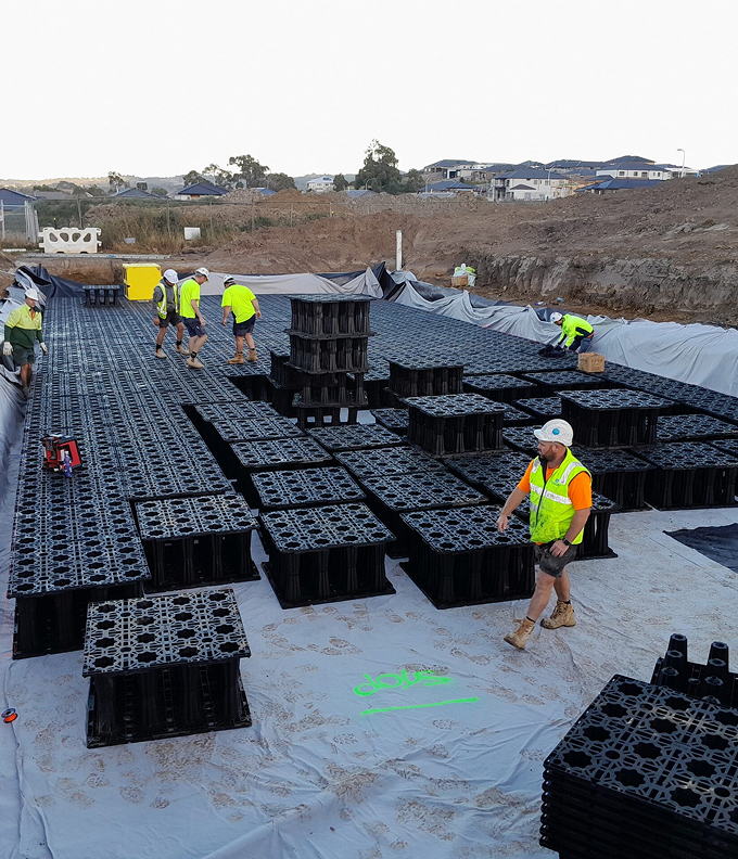 The StormBrake system is an innovative stormwater management system designed for a wide range of applications, including Onsite Detention (OSD), rainwater reuse, and infiltration.